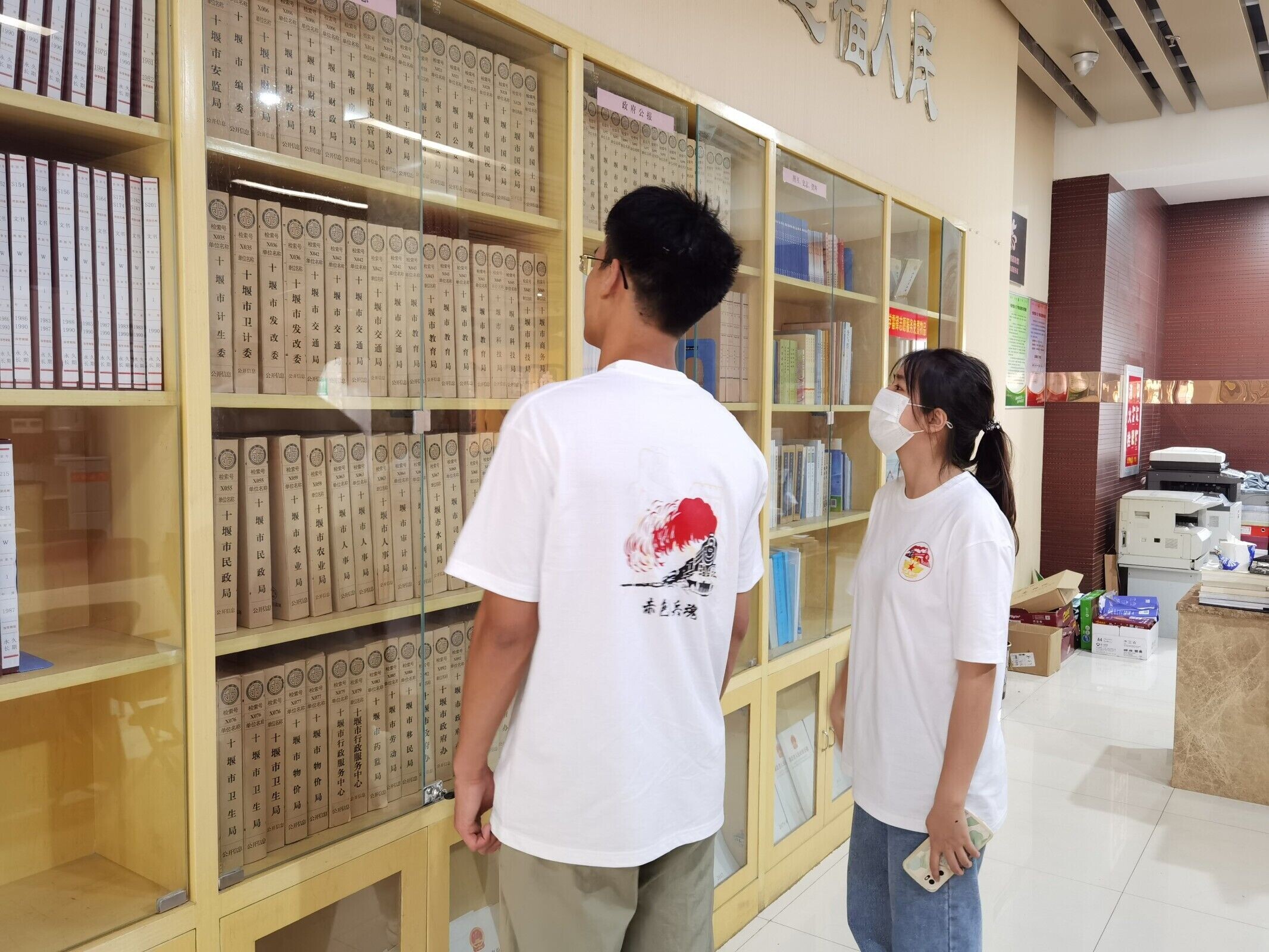 圖為團隊前往十堰市檔案館查詢有關襄渝鐵路和鐵道兵資料記載,尋找老鐵道兵的線索。中國青年網(wǎng)通訊員 周亞琪 攝