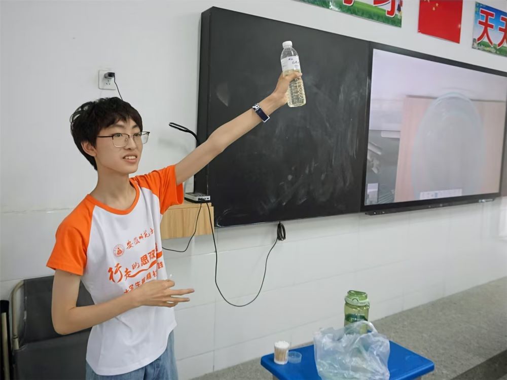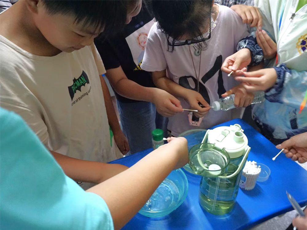 在生動有趣的科普課堂上,志愿者向孩子們普及微生物的知識。為了讓他們更深刻地理解勤洗手、保持清潔和防范病菌的重要性,志愿者還帶領孩子們進行了一項名為“膽小的胡椒粉”的實驗。在實驗中,孩子們親眼觀察到自己把手指浸入胡椒粉水后,胡椒粉會“逃離”它們的手指,這形象生動地展示了病菌的傳播和清潔的重要性。