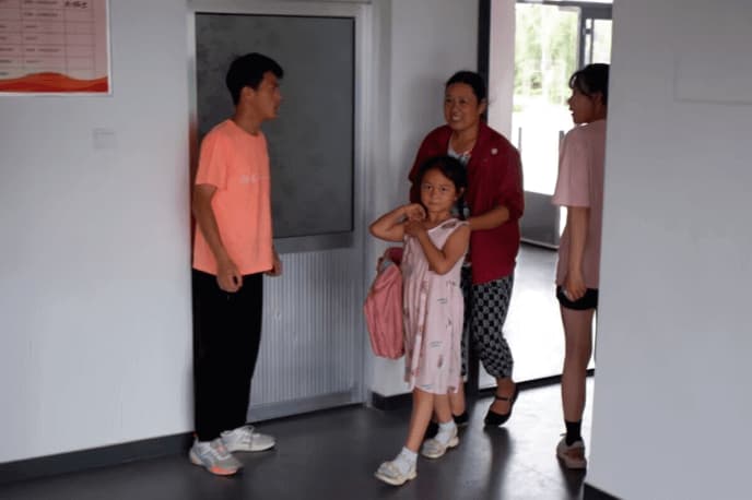 開展愛心支教活動的消息后,將適齡學生送到民安驛站。實踐團成員迎接前來輔導的學生,并了解其學習科目及進程,為開展精準支教活動提供前提保障。
