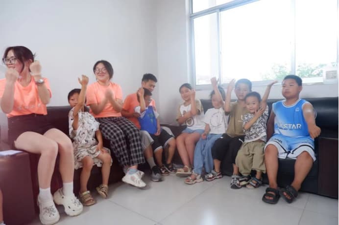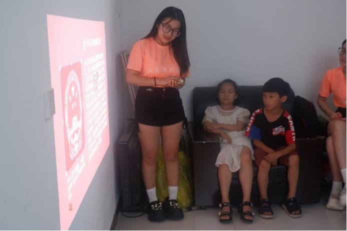 山東理工大學“向陽花開”實踐隊:踐行愛國主義,點燃愛國熱情 7月9日,山東理工大學"向陽花開"社會實踐團隊于泰安市新泰市洼子村為當地學生開展愛國主題教育活動,向洼子村學生講解愛國主義。