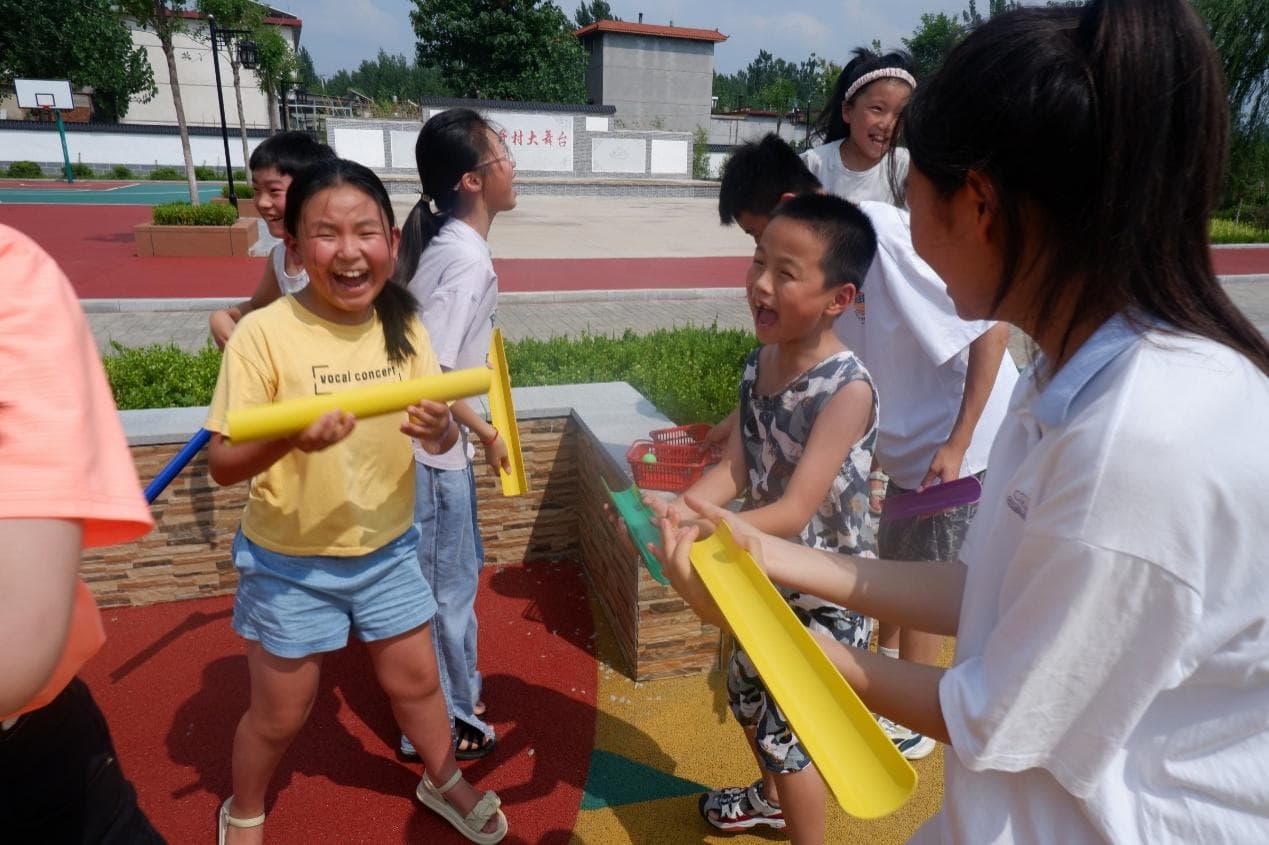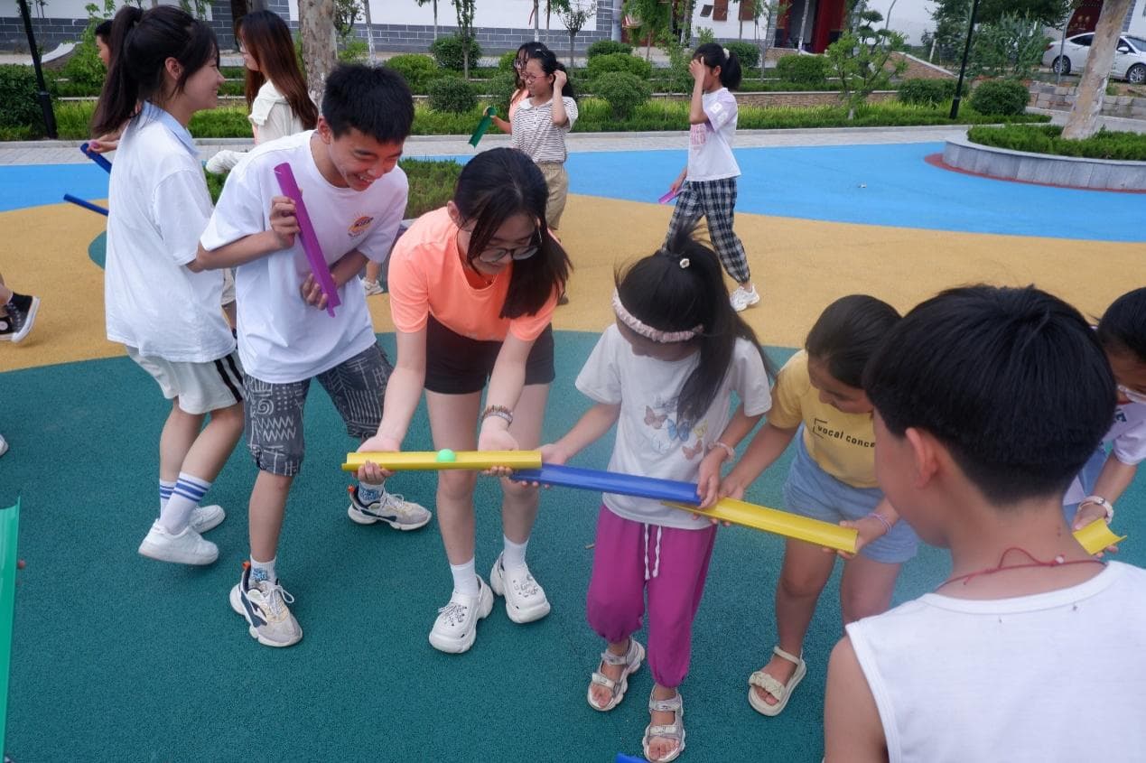 比賽過程中,實踐團成員與洼子村的同學們經多次嘗試,熟練掌握活動技巧,組內成員積極交流溝通、團結合作,游戲氛圍熱烈。實踐團成員們積極引導同學們遇到困難及時更換策略,共同努力,體現出團隊默契和同學們堅持不懈的精神。