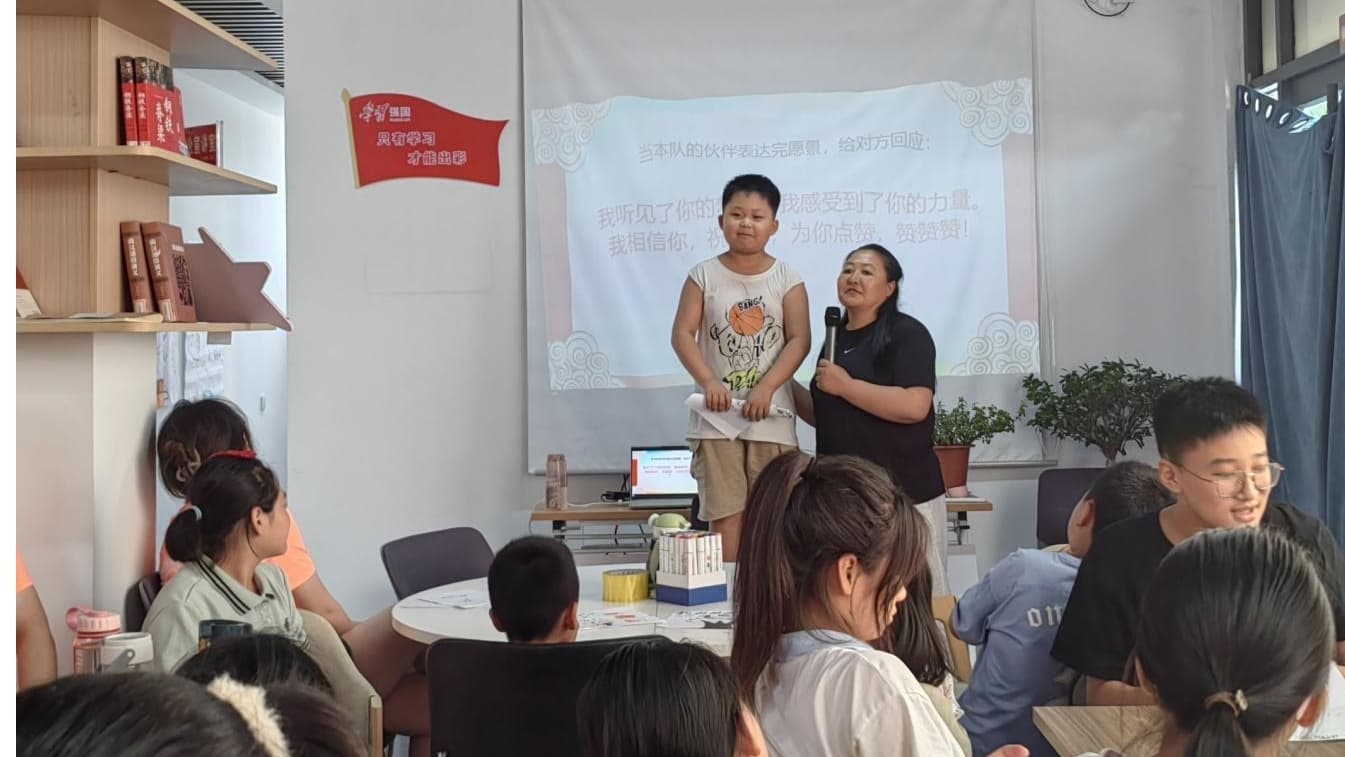 繪畫結束后,李玉霞老師將同學們分成若干小組并邀請各隊中小伙伴發言談論自己的夢想。同學們積極響應老師提出的問題,小組內同學認真討論并交流各自的想法,在討論中堅定自己的夢想。待學生們發言結束后,李玉霞老師耐心引導學生,對于夢想要持之以恒、奮斗不止,鼓勵學生們追求自己的夢想。