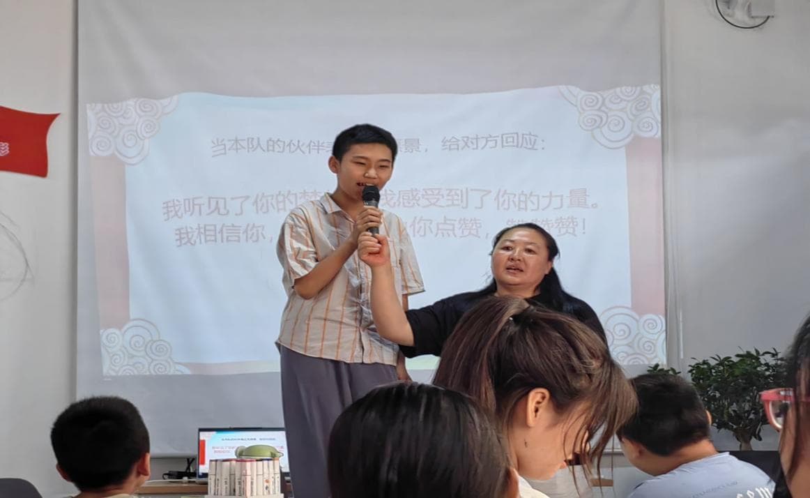 李玉霞老師帶動同學們表達自己想成為的人,當同學們表達自己的愿景后,李玉霞老師積極引導,其他同學表達鼓勵和點贊,上臺同學被鼓勵、更加自信,實踐團成員和李玉霞老師都非常感動,同學們暢所欲言,以夢為馬,未來可期。