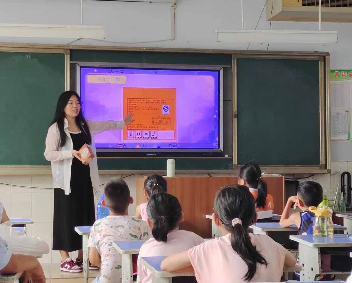 課前,實踐團(tuán)成員馬佳欣通過開展體驗式學(xué)習(xí)活動,以真實有趣的小故事將學(xué)生帶入情景,以主人公角色牢記“名稱、類別、日期和配料表”這四大食安要素,深刻了解不合規(guī)食品的危害,體會食品安全的重要性。
