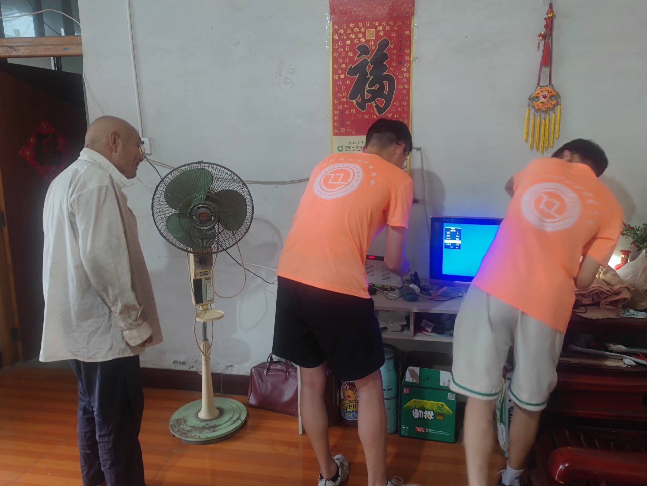 “關愛空巢老人,心系老人需要,我們在行動。”實踐團成員深入走訪洼子村一戶留守老人的家中,詢問其所遇生活問題。聊天過程中,實踐團成員了解到,老人和老伴兩人獨自在家,子女長期在外工作,老人家中的電視機沒有信號也尋找不到維修人員。實踐團成員聽到訴求后,毫不猶豫地答應幫忙修理電視機。