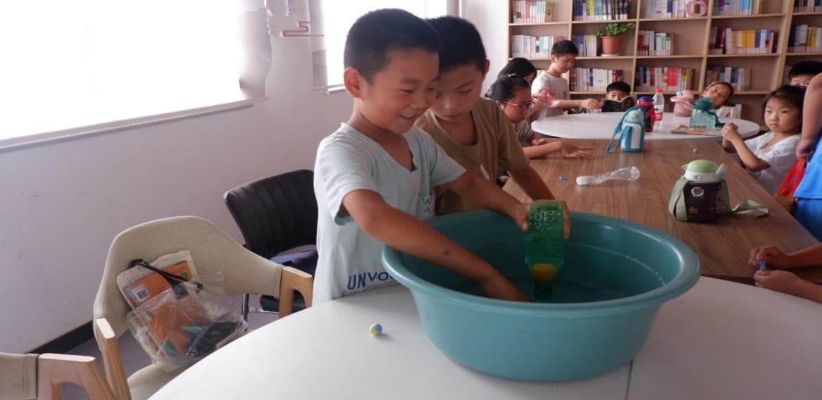 實踐團成員利用課余時間,組織洼子村學生們開展浮力科學小實驗。利用盆子、水瓶及乒乓球等日常用品,帶領學生們通過簡單的科學小實驗,理解書中深奧的物理知識,通過觀察和分析實驗現象,了解實驗內容,讓學生們更好地理解所學物理知識。