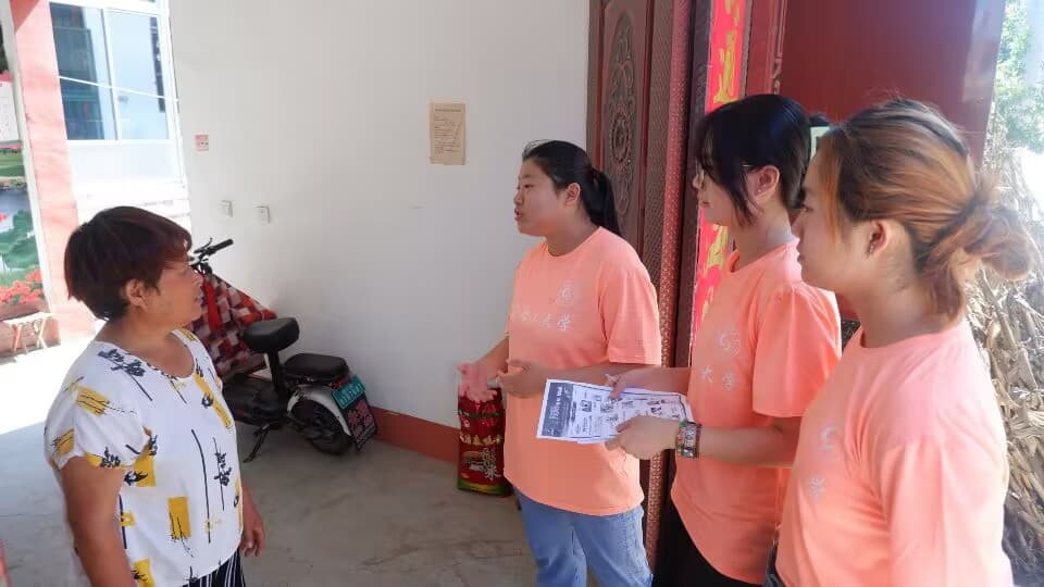 圖為實踐團成員為村民發(fā)放反詐騙宣傳單頁