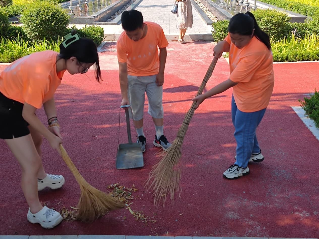 活動現場,實踐團成員手拿掃帚和簸箕等清理工具,分工明確,各司其職,充分發揚不怕苦、不怕累、不怕臟的精神,甩開膀子、挽起袖子、提起工具,仔細搜索清理綠化帶隱藏垃圾,清理好每一個角落。