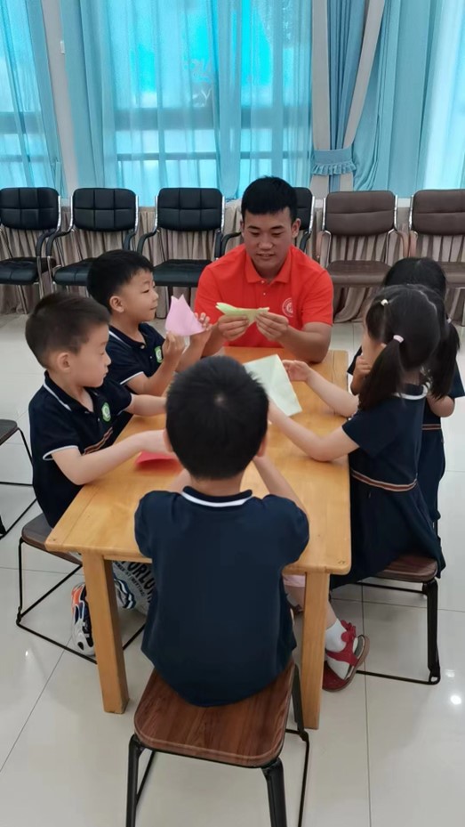 圖為隊(duì)員們教小朋友們制作折紙火箭,激發(fā)孩子們對(duì)兩彈一星的興趣。通訊員 王雨婷 攝