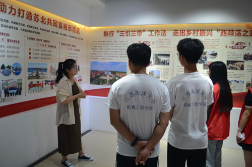 隨后,成員們來到西棘蕩村村史館進行實地調研,村史館作為一個重要的文化遺產,不僅讓我們更加了解村莊的歷史,還讓我們對傳統文化有了更深入的認識,加深了對中國共產黨和鄉村振興戰略的發展歷程的了解,并進一步增強了愛國情懷和責任感。最后,研學團的成員們參觀了村企,體驗了他們的生產流程和企業文化,通過與負責人的交流,同學們不僅增長了知識,還了解到了永泰塑業有限公司等支柱企業對于當地經濟發展所起到的重要作用。