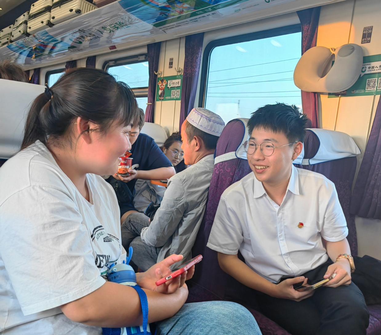 閑嘮家常會民情這一路上,團隊成員與同行的旅客朋友們相談甚歡,在列車途徑各個站點的青藏線旅途中,與不同的旅客“面對面,心貼心”的交流,閑聊家常的同時,了解民情農情,為后續(xù)社會實踐打下堅實基礎。正所謂“知屋漏者在檐下,知政失者在朝野”,只有深入群眾、與群眾貼心交談,才能發(fā)現(xiàn)當?shù)厝罕姷墓残詥栴}和亟待解決的需求。而深入群眾不僅僅是拿著筆記本入戶走訪,是田間地頭邊干農活邊嘮嗑,也是漫長旅途中的閑談,是吃農家飯聽農家事,也是走街串巷多聽細看,才能真正把好事辦實,把實事辦好,才是團隊遠赴西藏的初心所在。