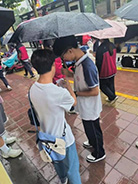 圖為宣傳者們為學生宣傳防詐知識發放傳制品 丁豪攝