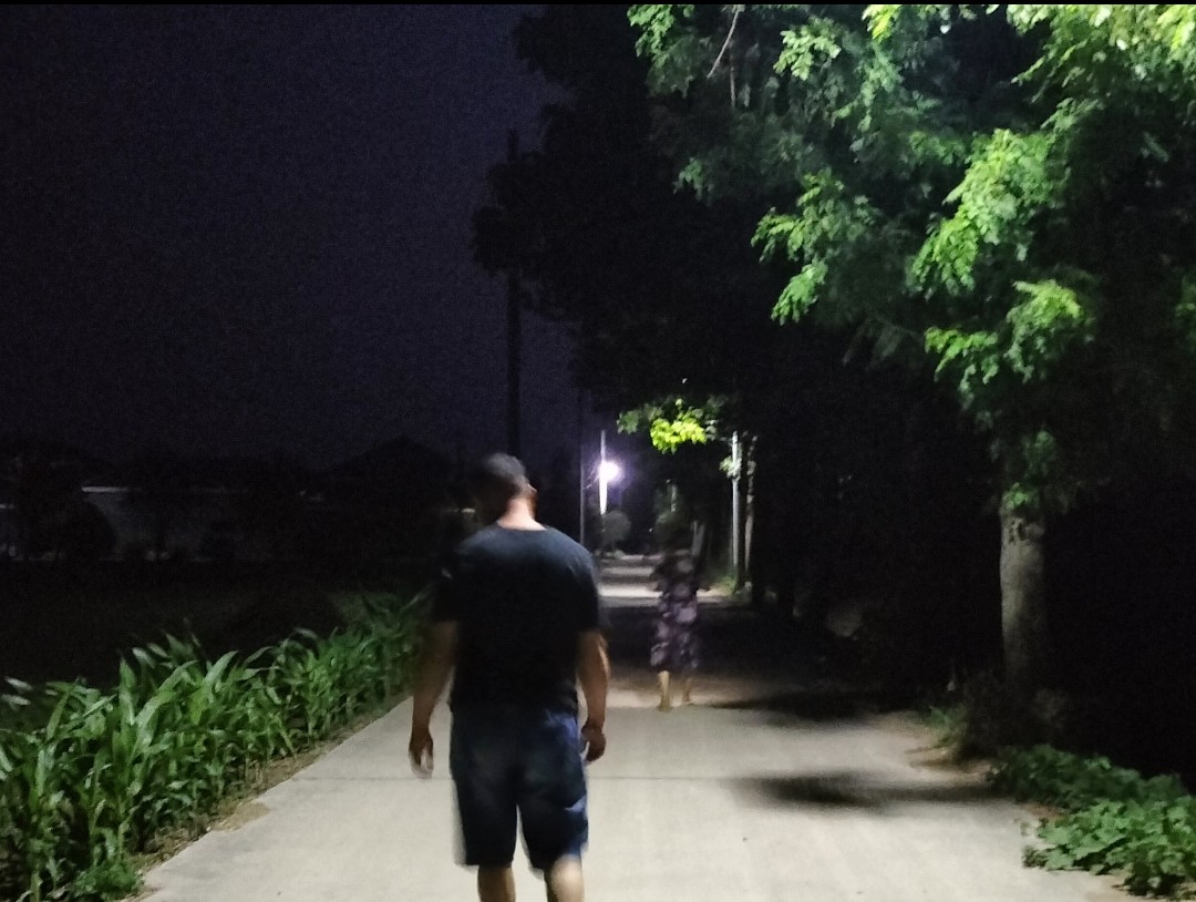 圖為夜晚村民在路燈下散步聊天的場景。 通訊員 褚艷雨 攝