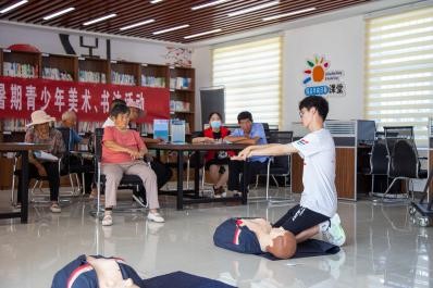圖為實踐團成員為居民展示心肺復(fù)蘇。實踐團成員 楊悅 攝