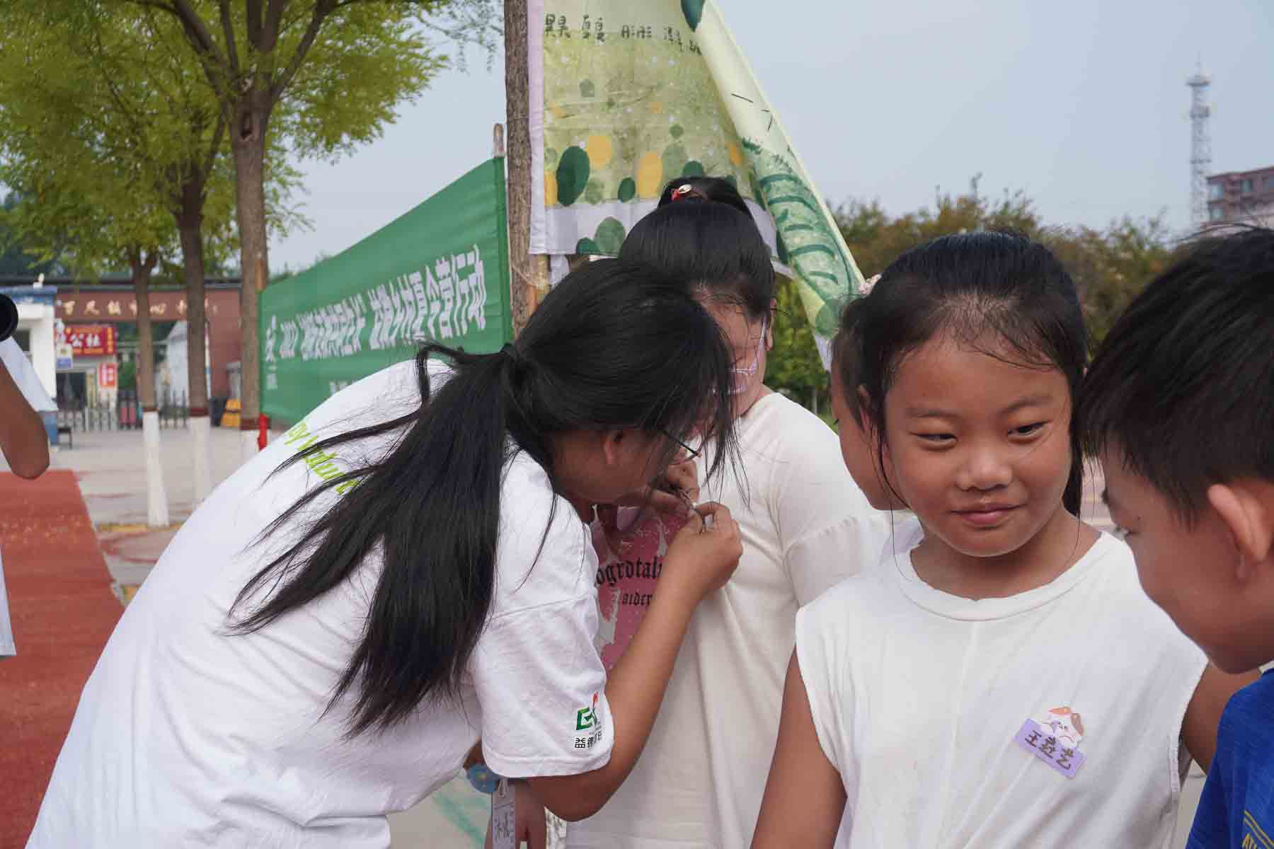志愿者為小朋友們頒發(fā)夏令營胸針 孫昊 攝
