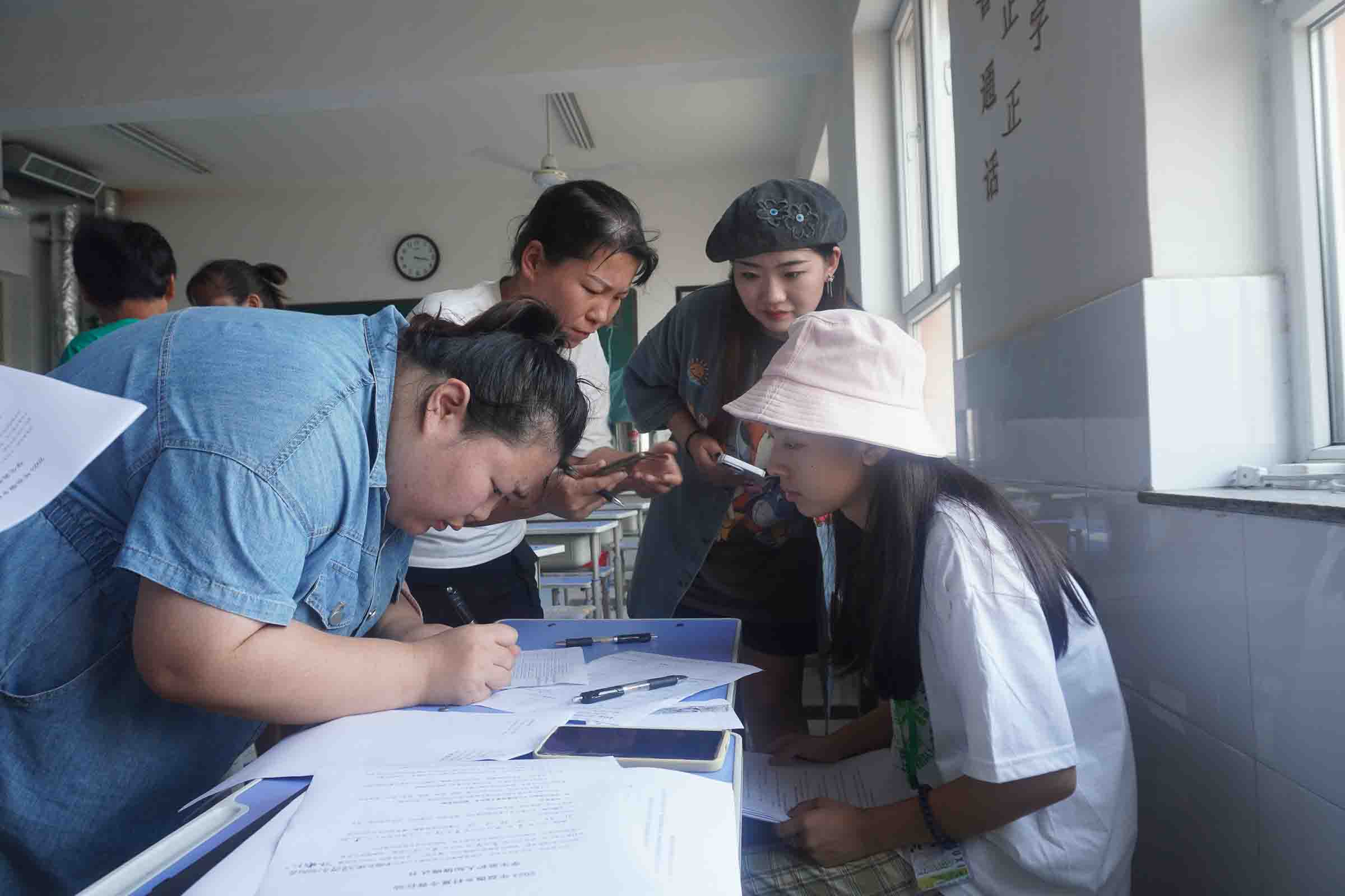 開營時志愿者給小朋友簽到 周柯江 攝