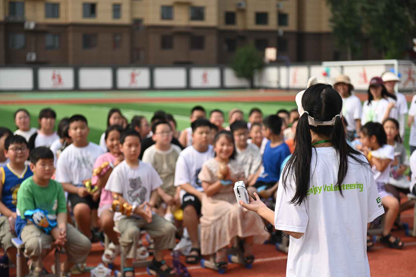 志愿者帶領(lǐng)小朋友們破冰團建 周若蕓 攝