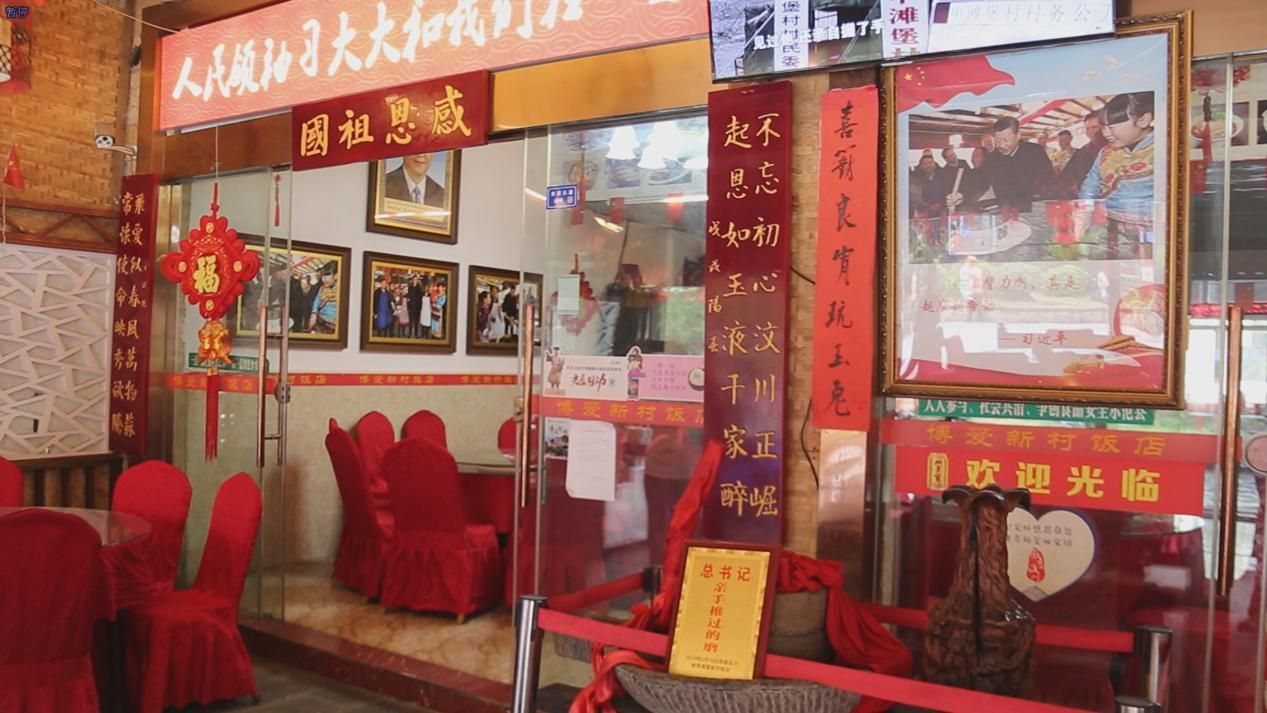 博愛新村飯店坐落在映秀鎮東莞大道的交叉口,是一座三層樓高的羌式現代民居,其質樸的寧靜中富含濃厚的地方魅力。實踐團隊與正在飯店內等著美食的居民交流,聆聽他們的故事和感悟。在這里,他們感受到了映秀人民的熱情和對生活的熱愛。