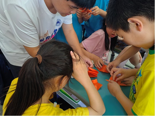 此圖為隊(duì)員曹曉陽教小朋友做手工(通訊員 陳佳敏 攝)