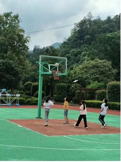 圖為晚自習飯后,孩子們自發的到籃球上上鍛煉身體。(廖垣檣 攝)