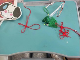 手工課上孩子們認真學習志愿者們的動作,自己制作的中國結。(代宇晗 攝)