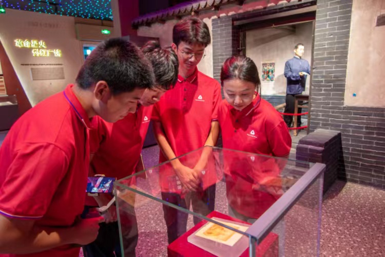 圖為實踐隊隊員觀看《共產黨宣言》 任鑫 攝