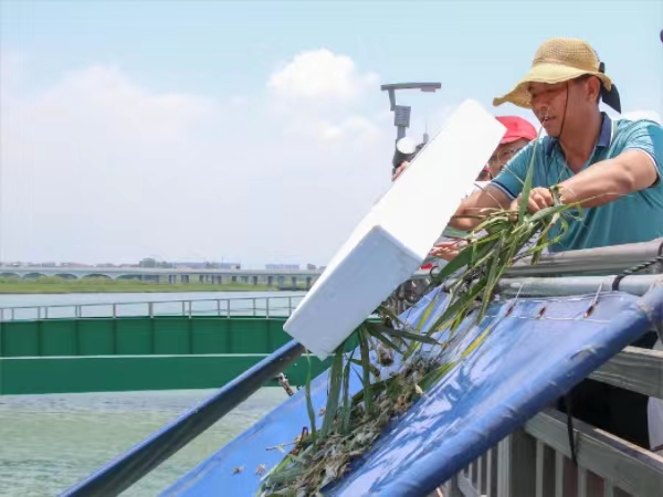 在廈門大學嘉庚學院蔡麗云老師的介紹下,實踐隊隊員了解到:水生生物增殖放流是一種高效且有益于恢復水生生物資源、改善水域生態環境、促進漁業增效的重要措施。通過向水域中引入適宜的生物種群,不僅可以改善生態環境的質量,還維護了生物多樣性和群體結構的穩定性。而魚類、貝類、蝦蟹類等水生生物,通過吸收和釋放二氧化碳,間接實現了減排效應,創造了“藍碳”。