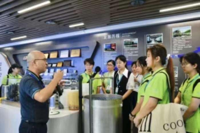 當進入產品生產車間時,產品工程師向實踐隊隊員介紹工程應用案例,嘉戎技術在長期的研究和生產實踐中,不斷進行膜應用相關核心技術的積累,以及膜組件等關鍵生產部件的產品開發和生產工藝優化,通過科技創新、模式創新、業態創新和新舊產業融合的方式,為“綠水青山”和“雙碳目標”貢獻力量。