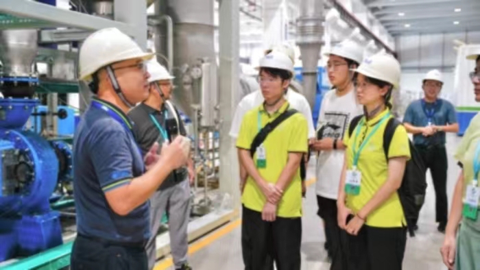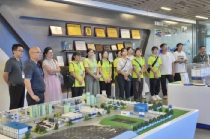 了解完精品案例,實踐隊隊員深入車間參觀了成果展廳、化學實驗室、中試基地及集裝箱式滲濾液處理設備等。產品工程師為實踐隊隊員講述發展基礎材料和核心技術的意義,只有將基礎材料和核心技術同時掌握在自己手中,才能牢牢掌握創新主動權和發展主動權。