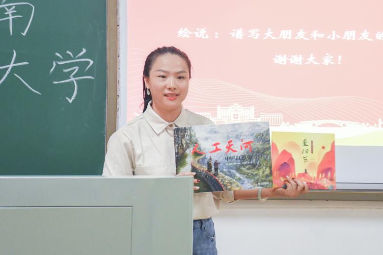 用青春守護青春,用成長陪伴成長。“繪說”寶貝聯盟親子讀書會暑期社會實踐團負責人葉子豪在宣講時感慨道:“三下鄉這段時間,純真善良的可愛孩童與自由熱衷的科大學子攜手,共同寫下我們的盛夏專屬記憶手冊。”暑期期間,實踐團在開展繪本課堂、戶外實踐等活動之余,還制作了《詩韻古樓》——孩子們的詩集,給古樓鄉中心學校和吉利社區的孩子們帶來安全、快樂、有意義的暑期體驗。