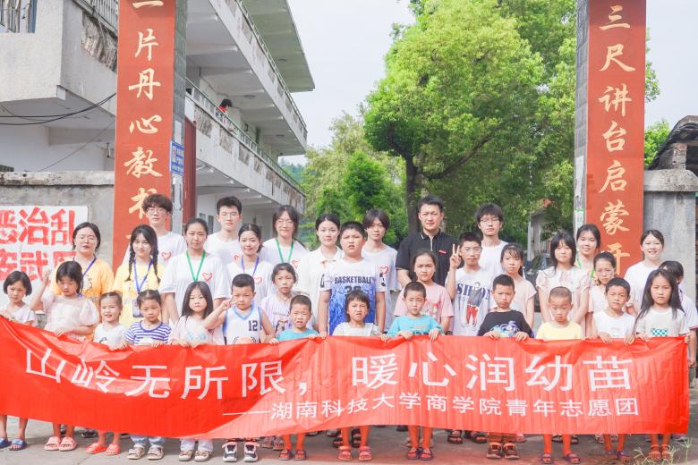 瀟湘學院“青年紅色筑夢之旅”社會實踐團:湖南科技大學瀟湘學院圍繞“黨建引領風帆勁,鄉村振興賦新能”的主題,組織素質優良的青年師生組成“青年紅色筑夢之旅”實踐團赴懷化市通道侗族自治縣萬佛山鎮木腳村開展為期15天的三下鄉”社會實踐活動。學院主要從愛國教育、筑夢課堂、維修便民、創意彩繪、宣傳報道五個方面對實踐團隊的工作進行總體部署。愛國主義教育貫穿愛心支教全過程,風采宣傳片和“激流勇進”“民族大團結”等創意彩繪大力推廣美麗鄉村。據統計,實踐活動在人民日報、人民論壇網、中國新聞教育網、光明網、中國青年網等30余家主流媒體報道超300次。實踐團在暑期“三下鄉”實踐中推進主題教育走深走實,為孩子們造夢遠航。實踐團為助力鄉村振興發揮了良好示范作用。