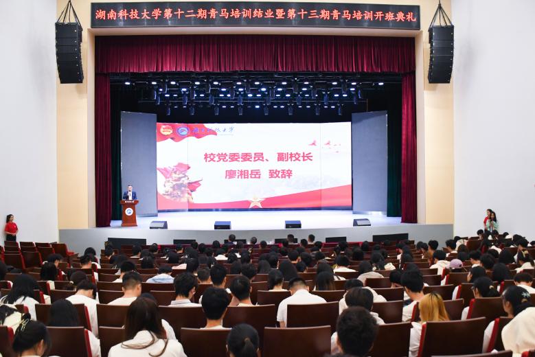 為深入學習貫徹黨的二十大精神,培養新一批青年政治骨干,持續推進“青馬工程”,11月7日14:30,我校“奮楫篤行跟黨走,共譜青馬新篇章”第十二期“青馬工程”培訓結業暨第十三期“青馬工程”培訓開班典禮(以下簡稱“典禮”)于黎錦暉音樂廳順利舉行。我校黨委委員、副校長廖湘岳、學生工作處正處級組織員黃偉、校團委書記魯義、研究生院副院長汪建群、校團委副書記唐寧瀟蒞臨典禮現場,參加典禮的人員還有校團委全體老師,各學院團委書記,第二十一屆校團委、學生會主席團成員,第十二期“青馬工程”優秀學員與第十三期“青馬工程”學員代表。