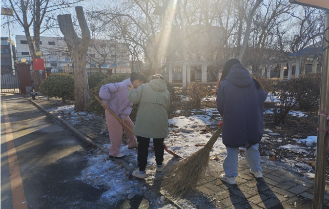 實踐團的成員們積極承擔了清掃和維護環境衛生的工作,主動為老人打掃衛生,鏟雪、掃地、擦桌子、整理床鋪等,并與老人們交流互動,仔細了解他們的身體健康狀況、日常生活情況和日常休閑活動,細心提醒老人們天氣冷了注意增添衣服、合理飲食,親切的話語和純真的笑容給老人們帶來了極大的精神慰藉。