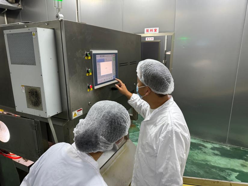 沈超還為蔬菜加工車間里引入了一批先進的設備,沈超向支隊成員介紹:“以前挑選雪菜都是依靠人工,但是人工挑菜肯定會出現一些問題,現在有了先進的設備,挑出來的雪菜質量也大幅上升。”生產車間內機器轟鳴,設備滿負荷運轉,經過挑選清洗、高溫漂燙、常溫冷卻、脫水烘干等嚴苛的工藝流程后,成品脫水雪菜便從生產線上流出,包裝后銷往各地。