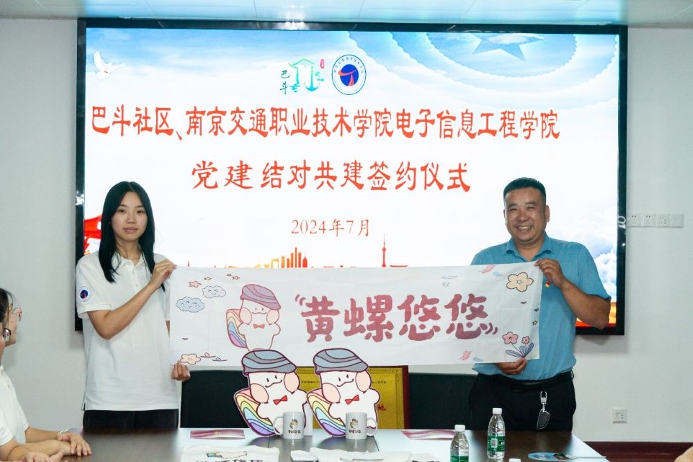 為深化社校共建,探索完善社區(qū)、學(xué)校共同發(fā)展機(jī)制,不斷創(chuàng)新社區(qū)服務(wù)群眾新模式,7月6日上午,南京交通職業(yè)技術(shù)學(xué)校電子信息工程學(xué)院與東臺(tái)市弶港鎮(zhèn)巴斗社區(qū)舉行黨建共建儀式,弶港鎮(zhèn)黨委副書(shū)記徐平、巴斗村黨支部書(shū)記葉勇、電子信息工程學(xué)院黨總支副書(shū)記吳蓉蓉、輔導(dǎo)員老師吳穎、巴斗村杰出漁民代表、“新農(nóng)引路,漁旅同行,共筑海韻之夢(mèng)”鄉(xiāng)村振興實(shí)踐團(tuán)全體成員參加了本次活動(dòng)。