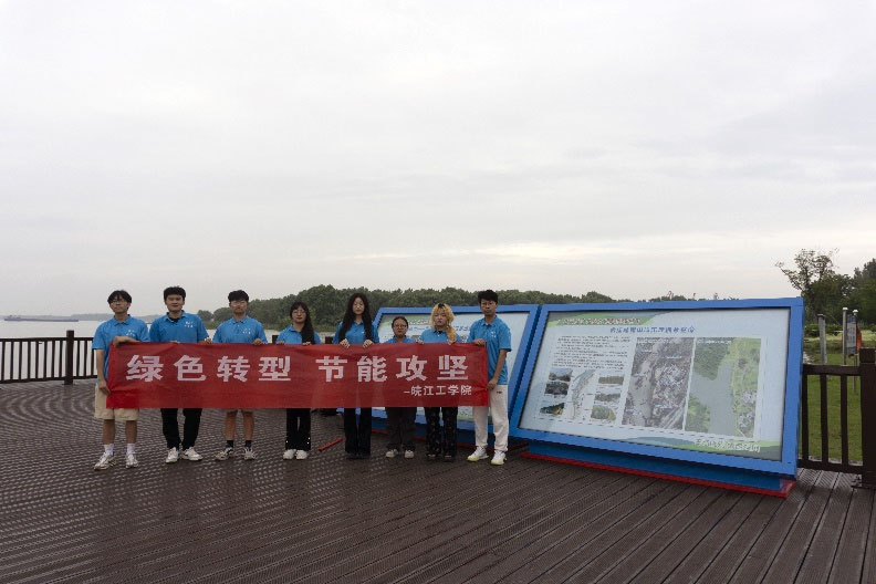 隨后土木工程學院實踐團隊參觀當地的景色,這里如今游人成群,群眾在此游玩賞景感受大自然的美好。公園中有爺爺帶著自己的老伴在游覽觀光道上鍛煉身體,母親推著嬰兒車在觀光臺,父親帶著兒子游玩,遠處還有行人牽引寵物狗,每一幅場景都體現著人與自然的和諧相處。站在觀景臺向遠處眺望水天一色,長江之水緩緩流淌,一只白鷺從遠處飛來落在薛家洼。
