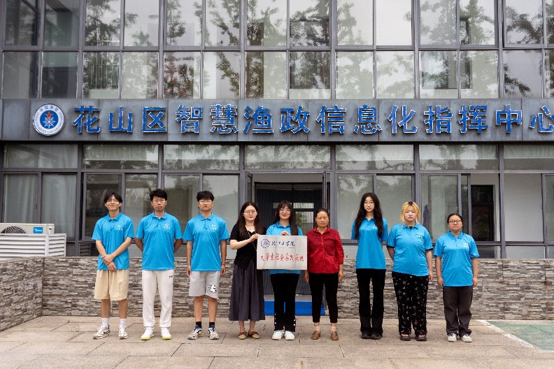 下午,實踐團隊走進薛家洼了解改薛家洼環境造內容,最后實踐團隊成員和濕地公園負責人在花山區智慧漁政信息化指揮中心共同完成了“皖江工學院大學生社會實踐基地”掛牌儀式。