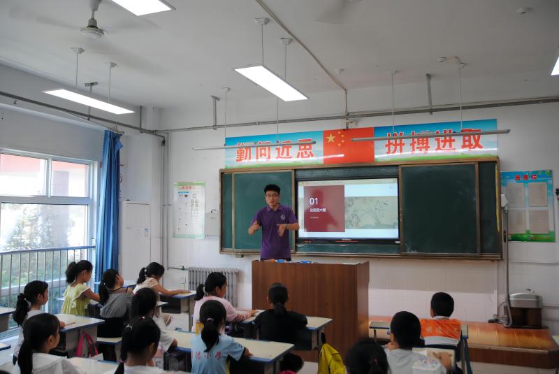 為傳承和發揚中華民族優秀傳統文化,使古老的藝術瑰寶在新時代綻放光彩,7月18日,山東理工大學“愛之傳承”暑期社會實踐團在德州市武城縣四女寺鎮明德小學,為孩子們開展了一節《中國歷代繪畫大系——花鳥》美育課程,主講人張光顯從花鳥畫的萌發、獨立、寫實、表意四個方面,向大家介紹其發展歷程,鑒賞、品讀各階段代表名家作品及其人文內涵。