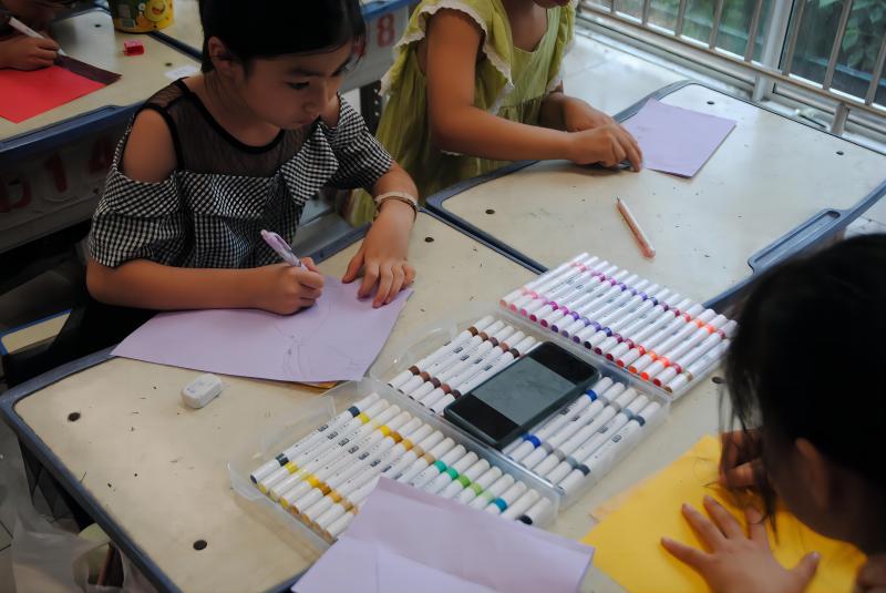 課程尾聲,主講人張光顯還帶領孩子們拿起畫筆,畫心中的花鳥圖。他先示范基本的構圖和線條技巧,孩子們全神貫注地傾聽。隨后,孩子們大膽創作,用色彩和線條描繪自己心中的花鳥世界。這一過程不僅培養了孩子們的動手能力和想象力,更讓他們在實踐中深入理解花鳥畫的魅力。通過親手繪制,孩子們與傳統文化有了更親密的接觸,也增強了對美的感知和表達能力。