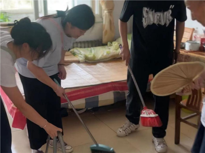 實踐團成員給老人打掃衛生