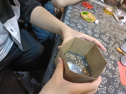 紙笸籮,作為一種民間手工藝品,以其精巧的制作工藝和獨特的裝飾效果而聞名。通過將柔軟的紙張編織成不同形狀的容器,紙笸籮不僅在實用性上具備優越性,還在美學上展現出獨特的民間藝術特色。如今,紙笸籮已經成為家居裝飾和禮品市場的熱門產品,它們傳承著歷史的記憶和人們對美好生活的向往。在小組成員的細心制作下,我們體悟到了它的精美以及中華傳統文化的歷史底蘊。