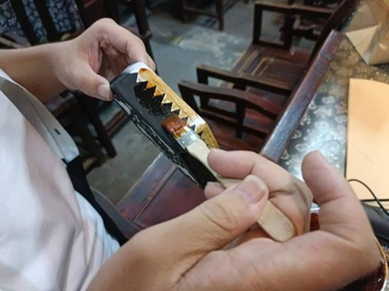 銅版畫,作為一門源遠流長的傳統工藝,通過在銅版上雕刻、印刷和上色,創造出豐富的藝術效果。這種技藝不僅在藝術上有著獨特的表現力,還體現了匠人對細節和色彩的精準掌控。盡管在數字化時代,傳統的銅版畫依然能夠吸引藝術家和收藏家,他們通過現代技術手段和傳統技法的結合,賦予作品新的生命和表現力。銅版畫由兩位成員精心完成,他們通過對銅板不斷地敲打,最終順利地完成了銅版畫的制作。