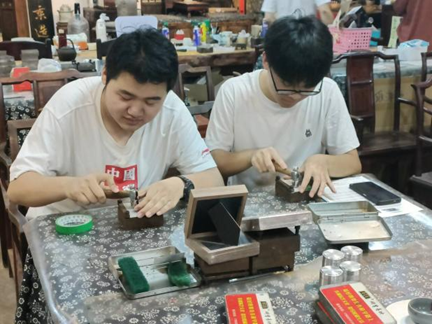 7月8日-7月14日,山東大學(威海)“古韻新聲,匠心筑夢”社會實踐團隊前往吉呈軒非遺文化旅游基地開展調研。本次調研主要是通過體驗吉呈軒一系列的活動,如銅版畫、鋦藝、紙笸籮、掐絲琺瑯和皮影等,從而增強對非遺文化的了解,探求當今時代非遺所蘊含的意義與價值,促進非遺文化的創新性發展。