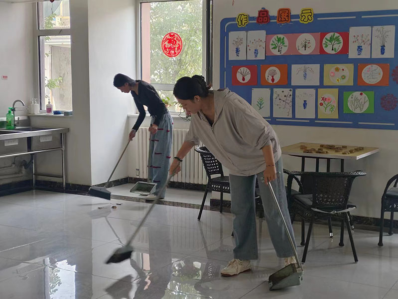 打掃衛(wèi)生和整理床鋪的工作也在實(shí)踐過程中進(jìn)行得如火如荼。志愿者們分工合作,有的仔細(xì)擦拭家具和窗戶,有的認(rèn)真清掃地面,不放過任何一個(gè)角落。在整理床鋪時(shí),志云這們細(xì)心地鋪平床單,把被子疊得整整齊齊,還為老人們更換了干凈的枕套。經(jīng)過一番努力,老人們的居住環(huán)境變得更加整潔、舒適。