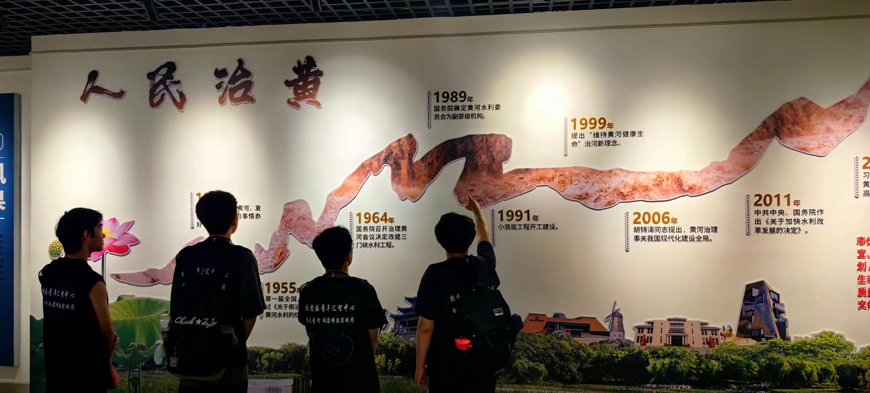 再往前走,一副巨大的治黃發展史圖映入眼簾,它集中展示了中華民族為應對黃河決堤而不屈不撓的故事。黃河是中華民族的母親河,它滋潤萬物的同時又給沿岸人民帶來麻煩,新中國成立以來,中央高度重視黃河治理,興修水利工程,涌現出一大批舍身治黃的干部才俊。