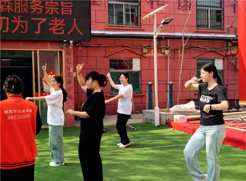 實踐團成員帶動老人一起做活動,與老人一同歌唱,拉近與老人的距離,讓老人感受來自社區大家庭的溫暖。實踐團成員幫助老人打掃衛生,為老人剪指甲,為老人做一些力所能及的事情,給老人送去子女般的關愛,讓老人感受來自社會大家庭的關懷。
