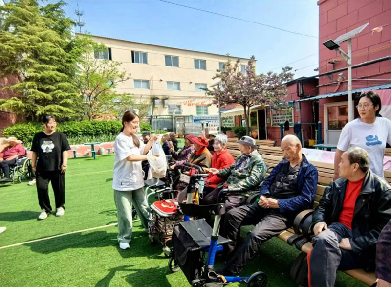 實踐團成員李熒熒為老人分發零食