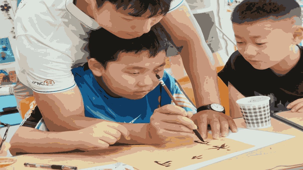 圖為小朋友正在認真練習毛筆字的書寫。王梓仰 攝