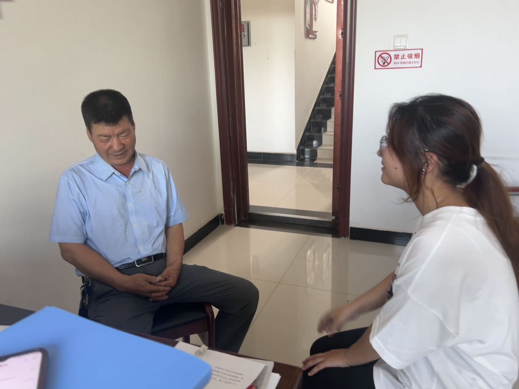 (注:圖為實踐隊員迪麗阿熱·阿不都如蘇力與六連書記李建平進行訪談)