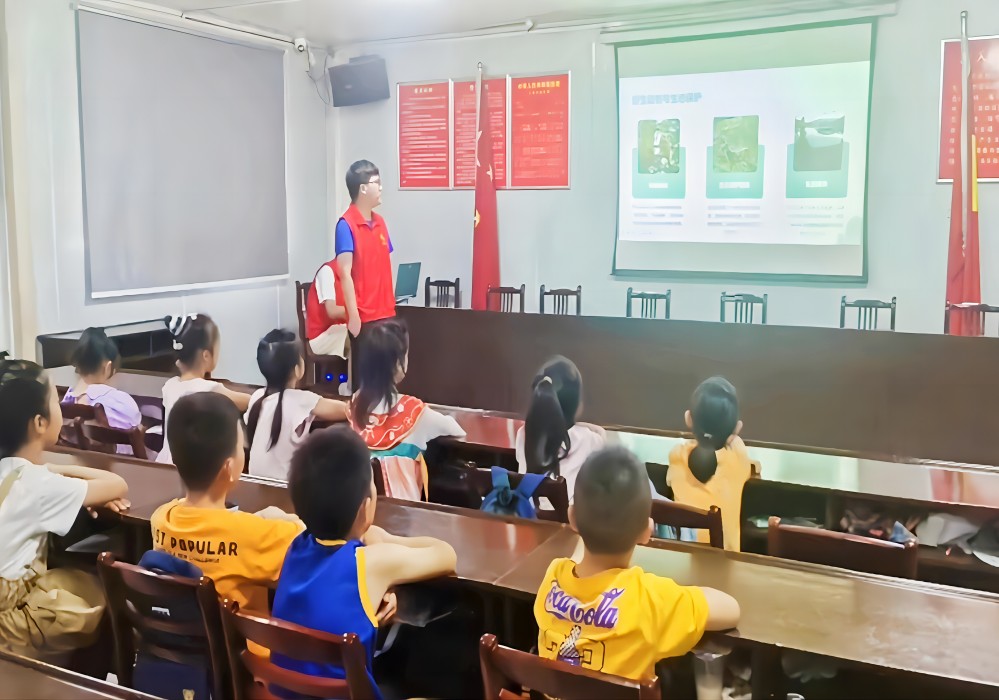 圖為志愿者向小朋友介紹生態保護。通訊員 王嘯龍 攝